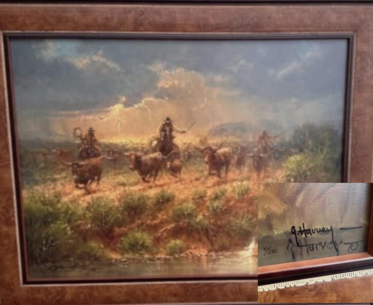 Gol-durn Trouble by artist G. Harvey and other Gerald Harvey art, art work, artwork, canvases, giclees, images, limited editions, open editions, paintings, paper, pictures, posters, and prints can all be found at Christ-Centered Art.