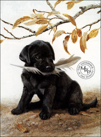 "One of the puppies, however, preferred feathers to anything else; hence his name,