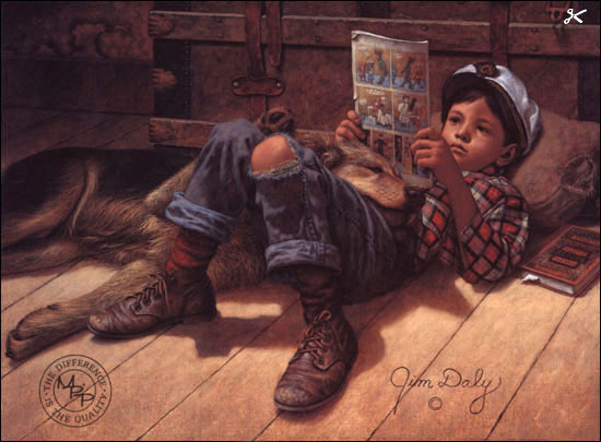 dog, Bullet. They were inseparable, and I thought they were perfect for this painting. Instead of reading his