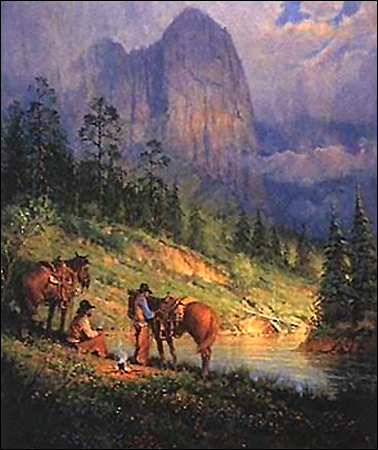 Cowboy Coffee painting by artist G. Harvey can be purchased in art print or canvas form at special sale prices at Christ-Centered Art. |