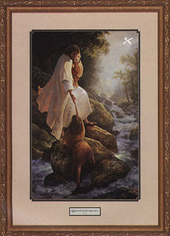 | This print (23" x 14" image size) comes framed in an ornate gold frame, double matted. The caption reads, "Lead me to the rock that is higher than I." -- Psalm 61:2. |