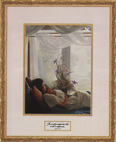 The caption reads, "As a mother comforts her child, so will I comfort you..." -- Isaiah 66:13. Note: The framing option pictured above is no longer available. |