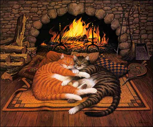 inscrutable world of cats. As Max and Remington embrace and bask in the fire's warmth, three mice tentatively