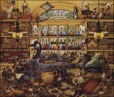 Quite at home among bottles, belljars, and bromides are Elmer and Loretta, two