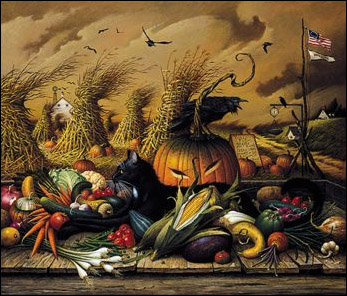 roadside stand, Monty, a proud and capable feline seems to be in charge, holding the crows at bay. In reality