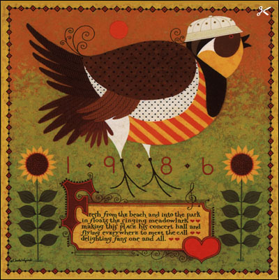 The 1986 Commemorative is summer, and Wysocki's meadowlark is in perfect attire, always