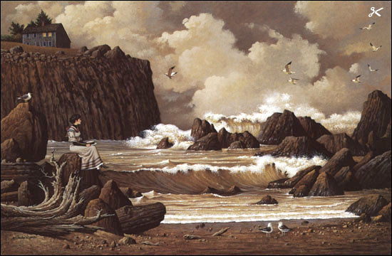 surf, and the day's somber mood, a brighter time lies on the horizon. She waits for good news,